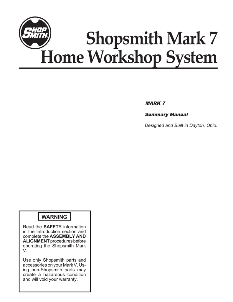 Shopsmith Mark 7 Summary Owner S Manual Manualzz