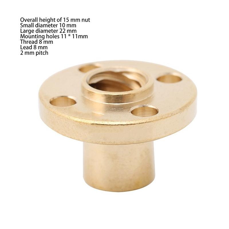 O8mm Brass Trapezoidal Lead Screw Non Slip Nuts T8 2mm Pitch For