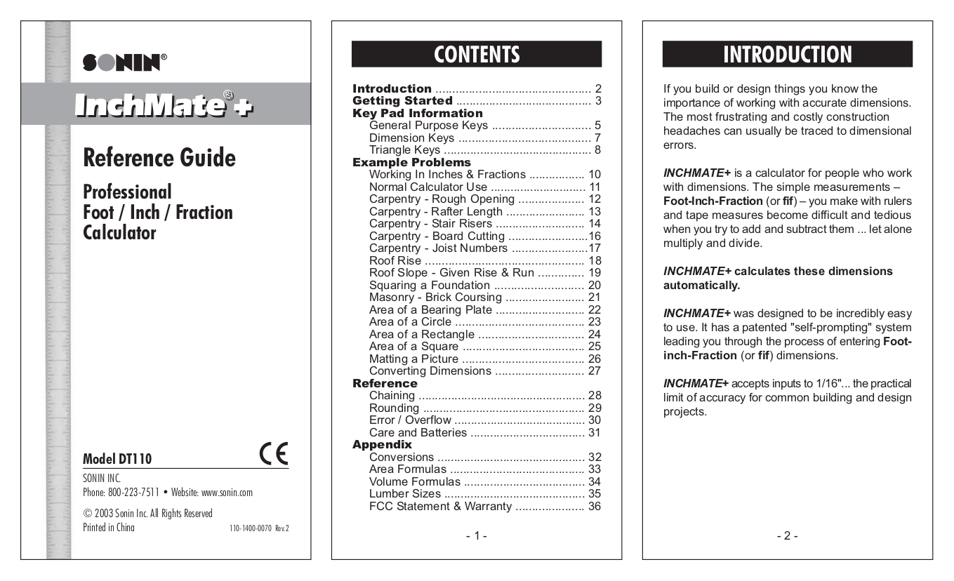 Sonin Inchmate Pro Dt210 Construction Measurement Conversion