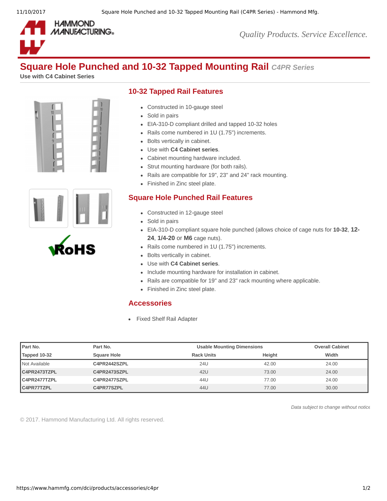 Mounting Rails Hammond Mfg