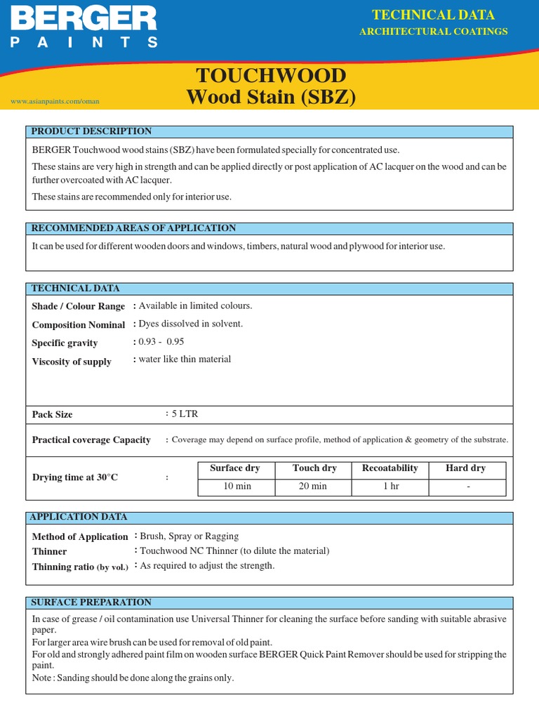Touchwood Wood Stain Sbz Pdf Paint Wood