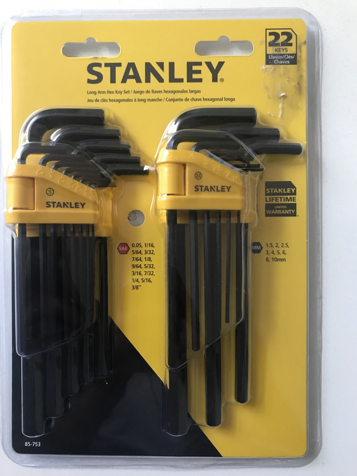 Stanley 85 753 22 Pc Metric Sae Long Arm Hex Key Set For Sale