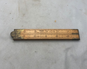 Vintage Stanley 32 Boxwood Brass Folding Rule With Caliper