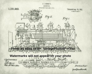 Antique Vintage Steam Engine Locomotive Train Railroad Patent Wall