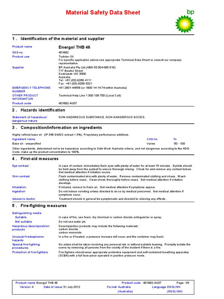 Msds Energol Thb 46 Personal Protective Equipment Dangerous Goods