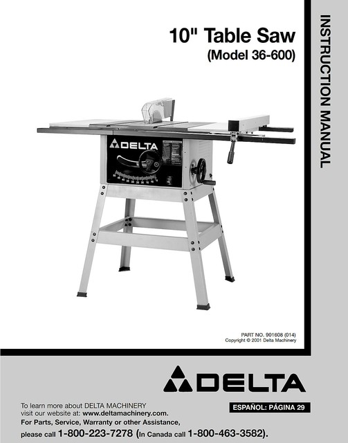 Delta 36 600 10 Table Saw Instructions Manual For Sale Online