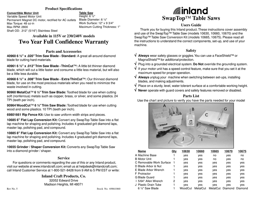 Swaptop Table Saws Manualzz