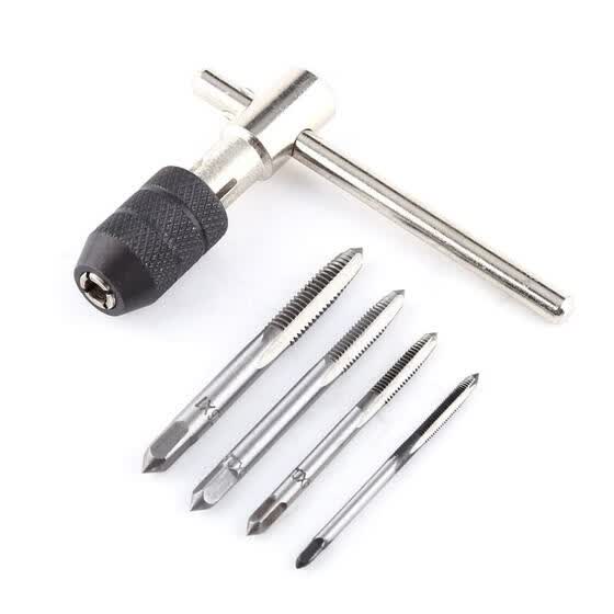 M3 M8 T Handle Ratchet Tap Wrench Machinist Tool With 5pcs Thread