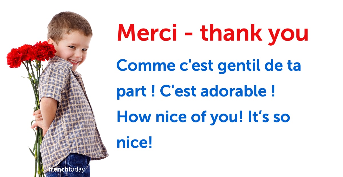 Thank you same to you in french. When you want to thank a group of person or highlight the person youre saying thank you to you can use one of the following sentences. Thank you is almost always translated as a simple merci. In the context of a classy 5 star restaurant if the waiter takes your credit card to pay he would say je vous remercie monsieur. It is used by all french speakers and will be understood anywhere in the world where french is spoken.