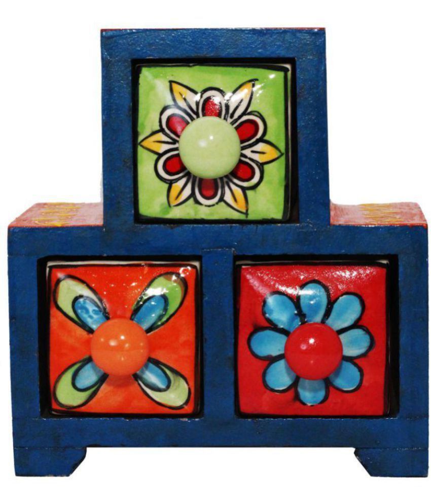 Beautiful Artwork Triangle Shape 3 Drawer Embossed Wooden Box Buy