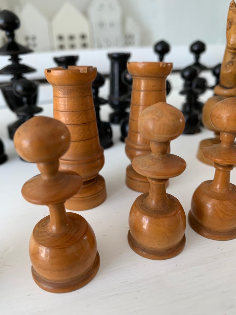 Old Hand Crafted Turned Wood Chess Set Game Pieces Carved Hardwoods