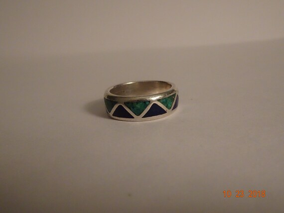 Sterling Silver Turquoise And Lapis Chip Inlaid Band Ring Size Etsy