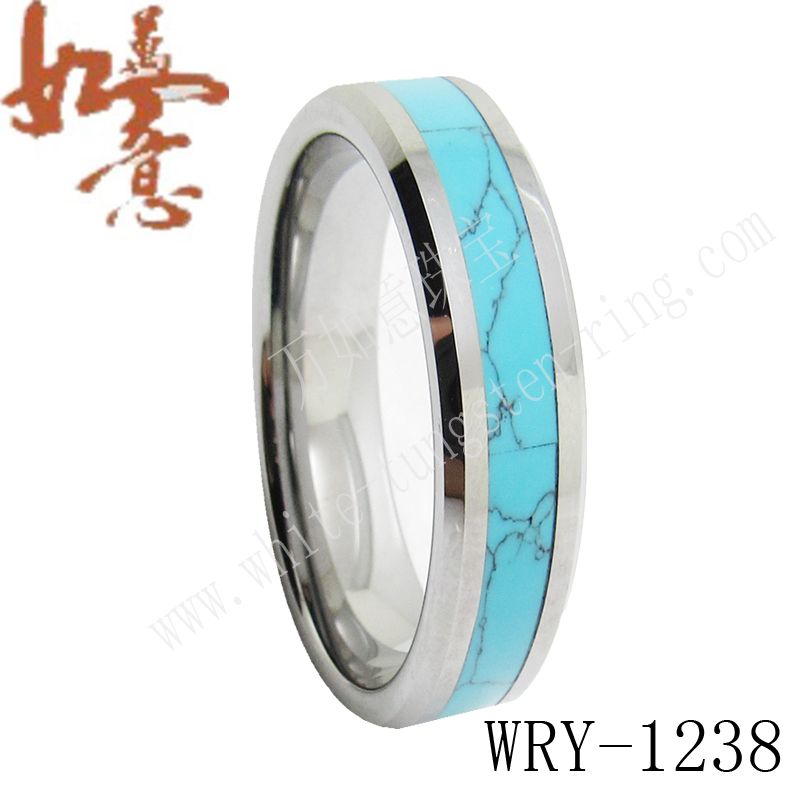 8 6mm Fashion Tungsten Ring With Turquoise Inlay Matching Tungsten
