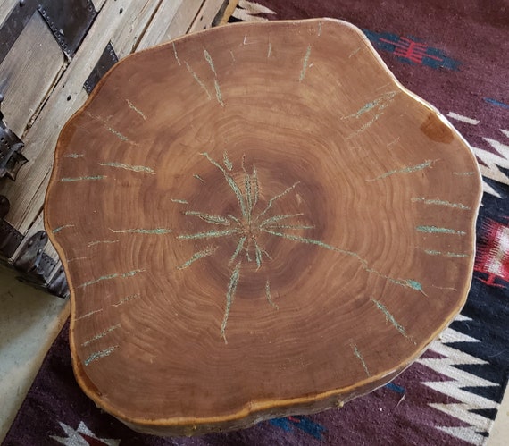 Turquoise Inlay Wood Slice Table Live Edge Etsy