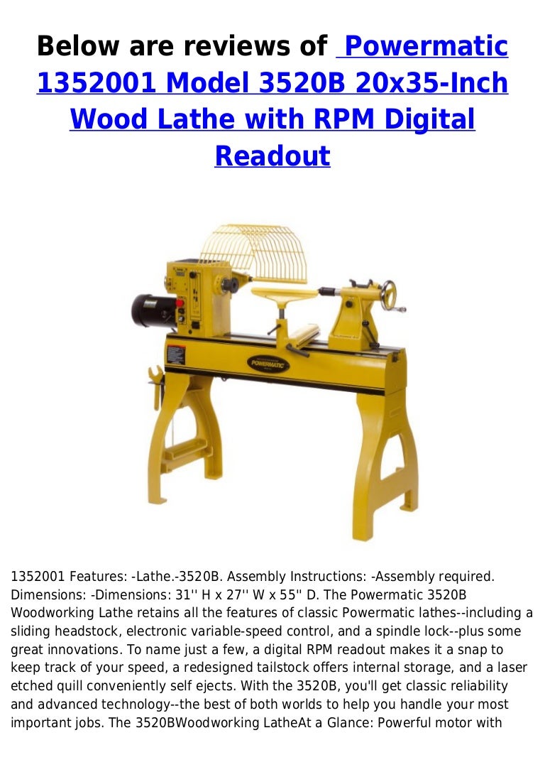 Powermatic 1352001 Model 3520 B 20x35 Inch Wood Lathe With Rpm Digita