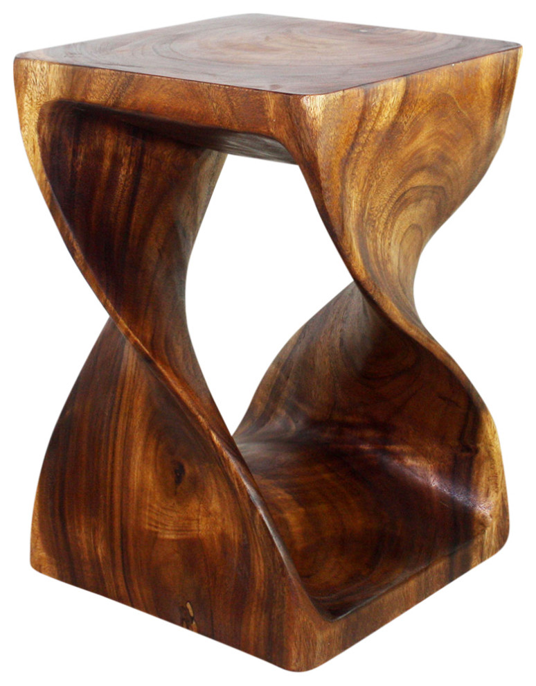 Haussmann Wood Twist End Table 15 X 15 X 20 Inch High Walnut Oil