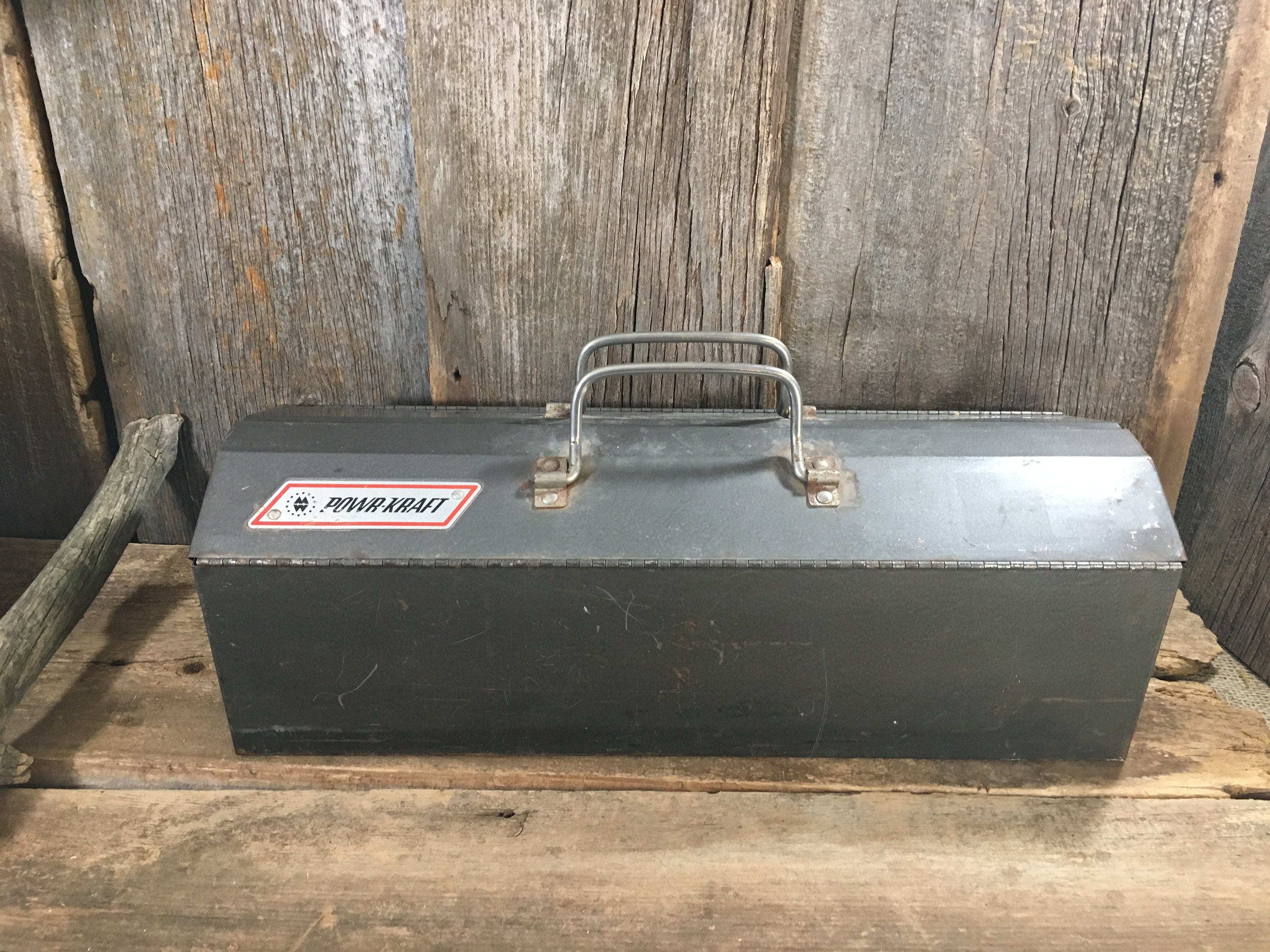 Vintage Powr Kraft Metal Tool Box Vintage Tool Box Grey Metal Tool