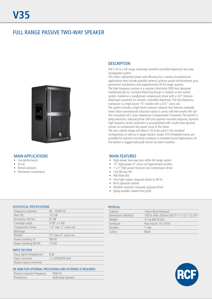 V35 Full Range Passive Two Way Speaker Description Manualzz