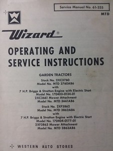 Wizard Western Auto Mtd 3760a86 3862a86 Garden Tractor Owner
