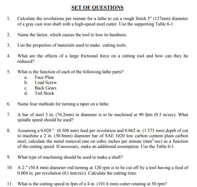 Solved Set Of Questions 1 Calculate The Revolutions Per