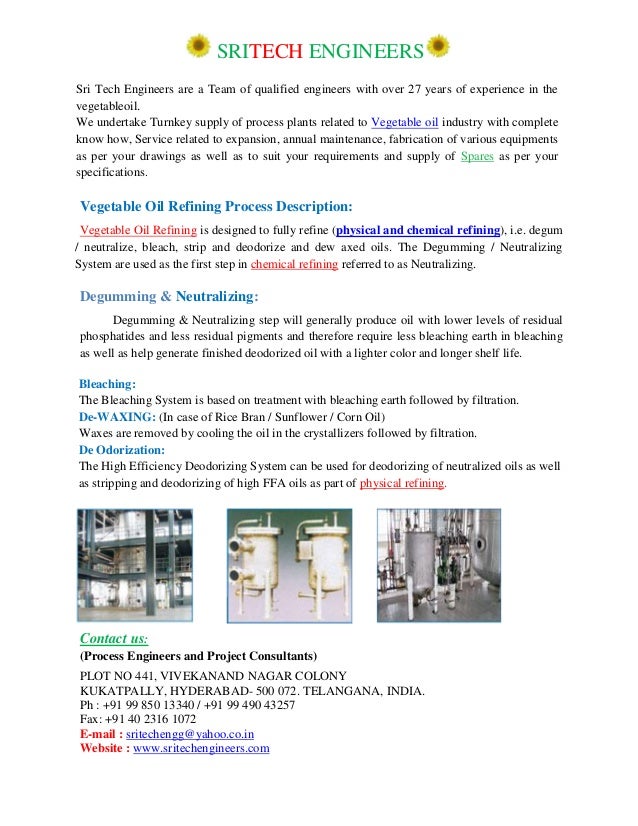 Vegetable Oil Refinery Physical And Chemical Refining