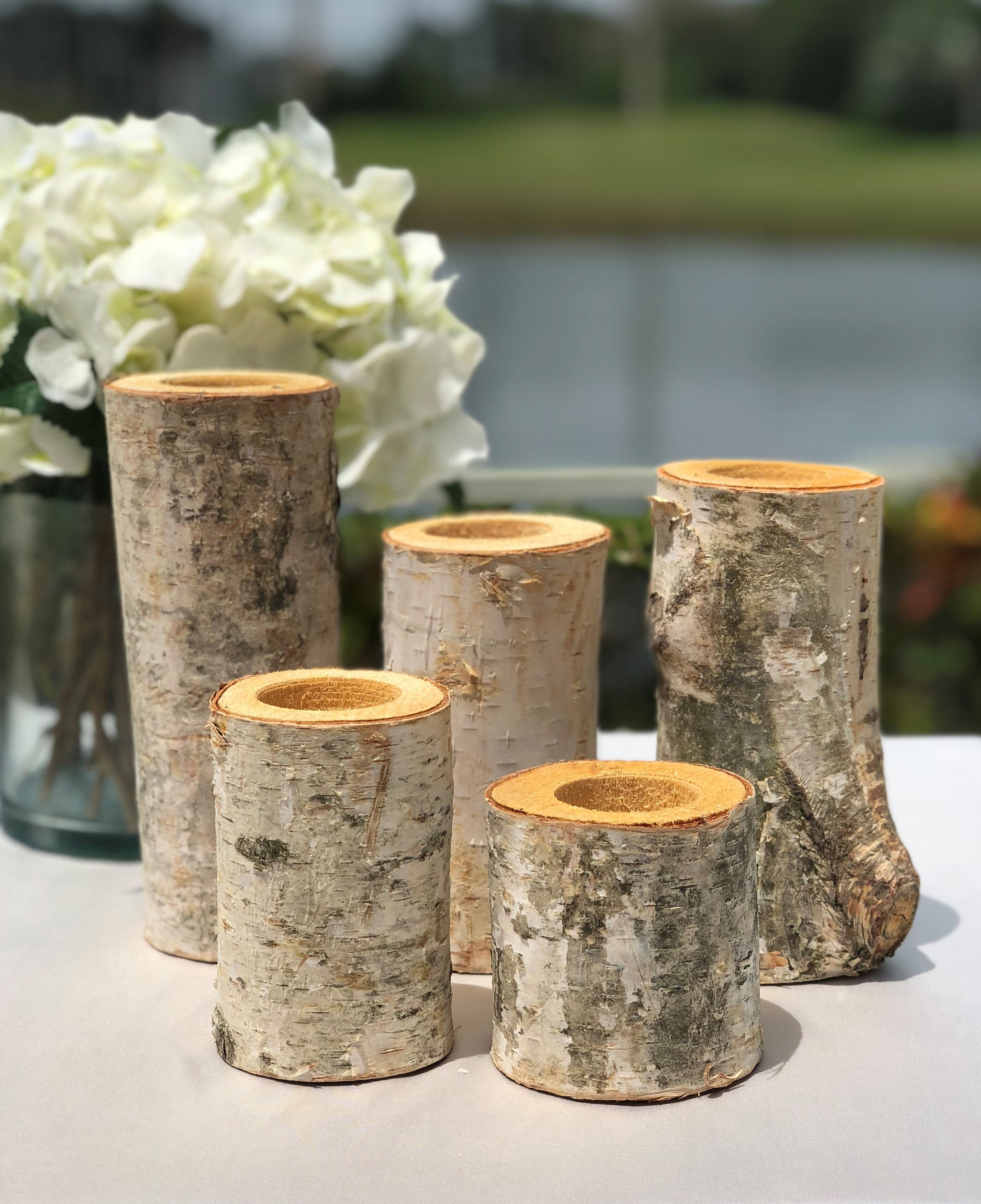 Ebern Designs 5 Piece Birch Bark Log Small Wood Tealight Holder