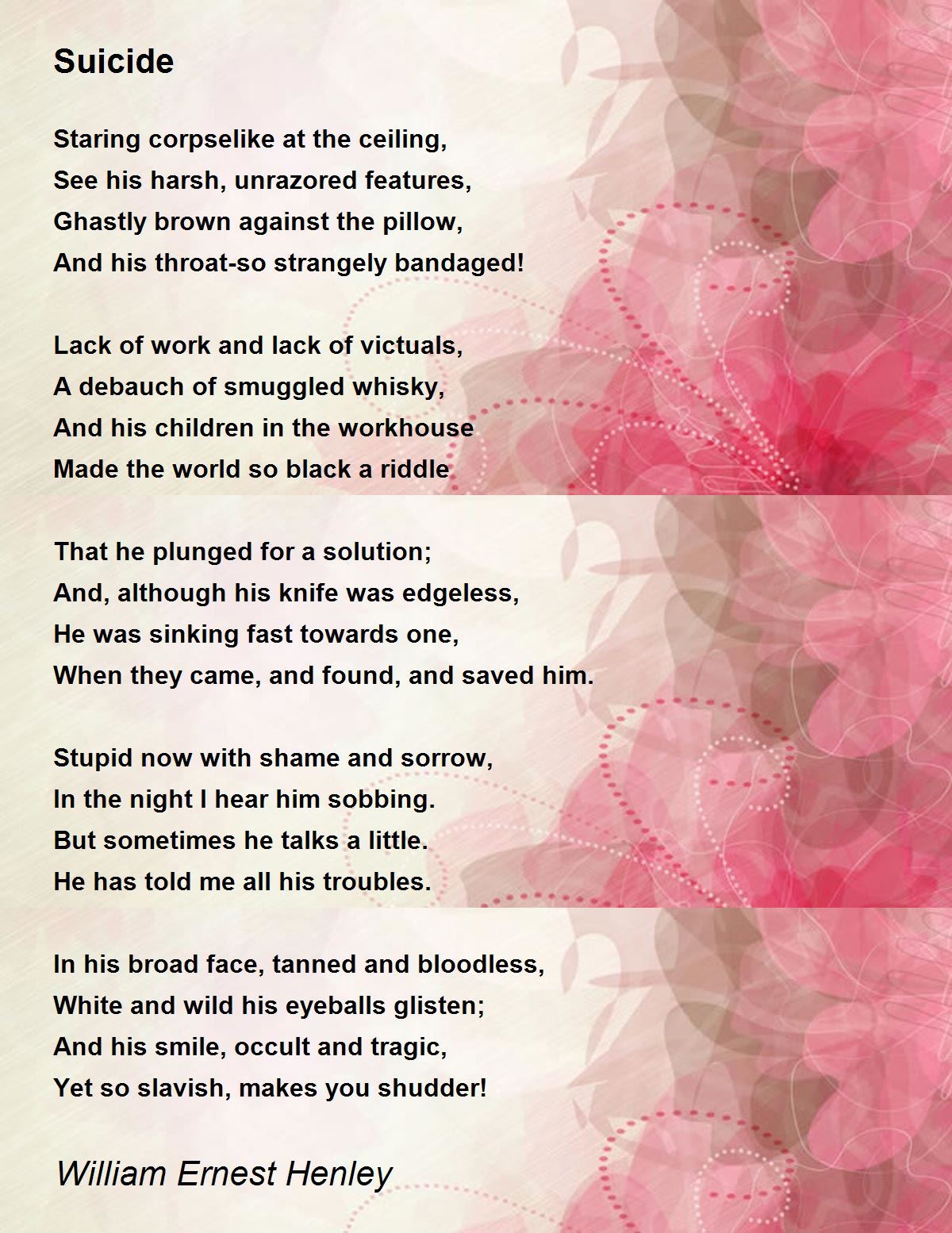 Suicide Poem By William Ernest Henley Poem Hunter