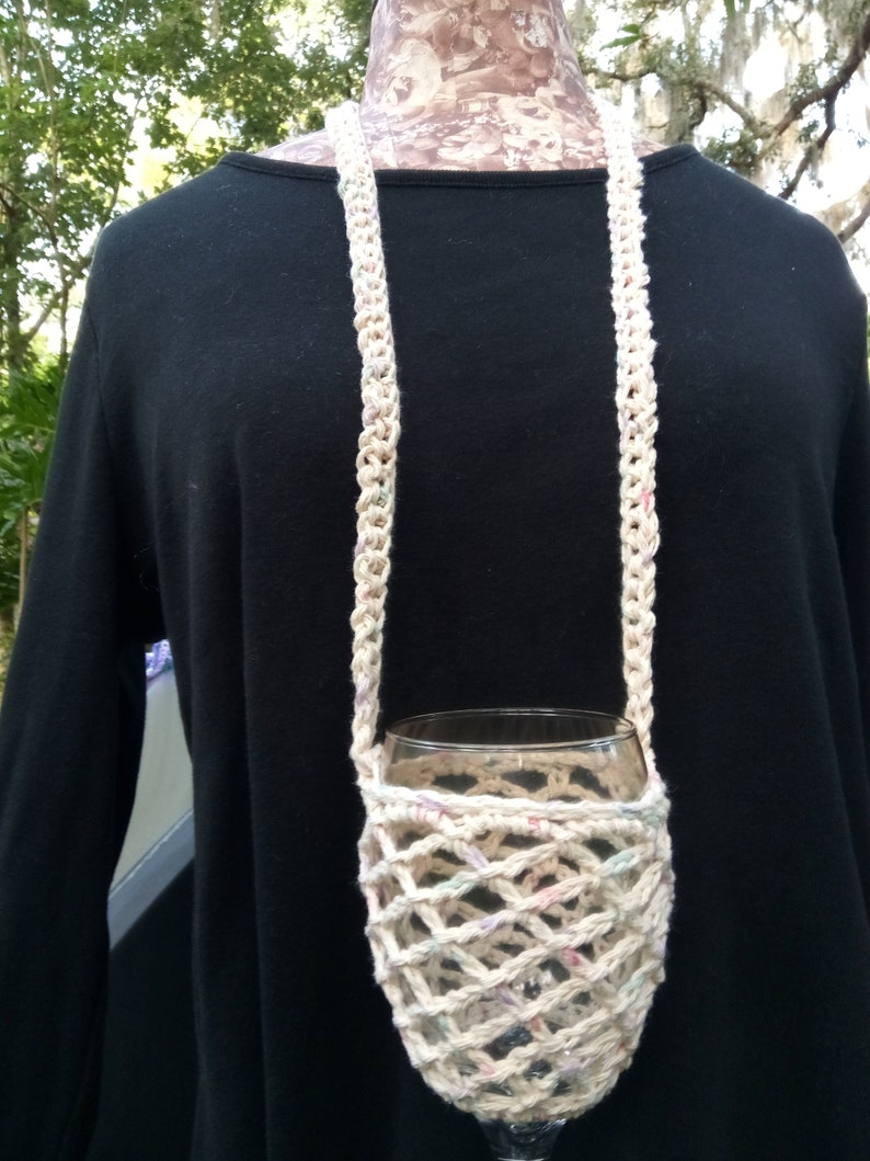 Crochet Wine Glass Holder With Neck Strap Crochet Lanyard