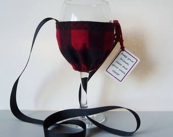Red Plaid Wine Glass Necklace Snowflake Fabric Wine Glass Etsy