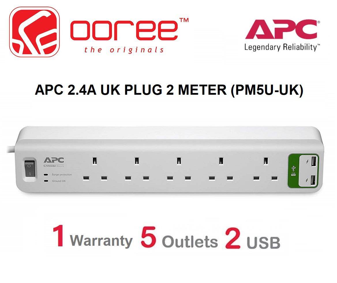 Apc Pm5u Uk 5 Uk Plugs 2 Usb Charger 2 4a Output Power Strip