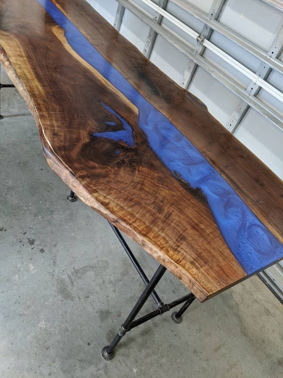 Bar Top Sofa Table Luxury Walnut And Resin Epoxy Viewing Etsy