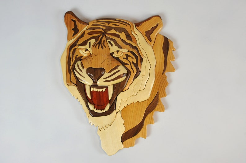 Handmade Wooden Intarsia Tiger Rustic Art Fine Woodworking Etsy