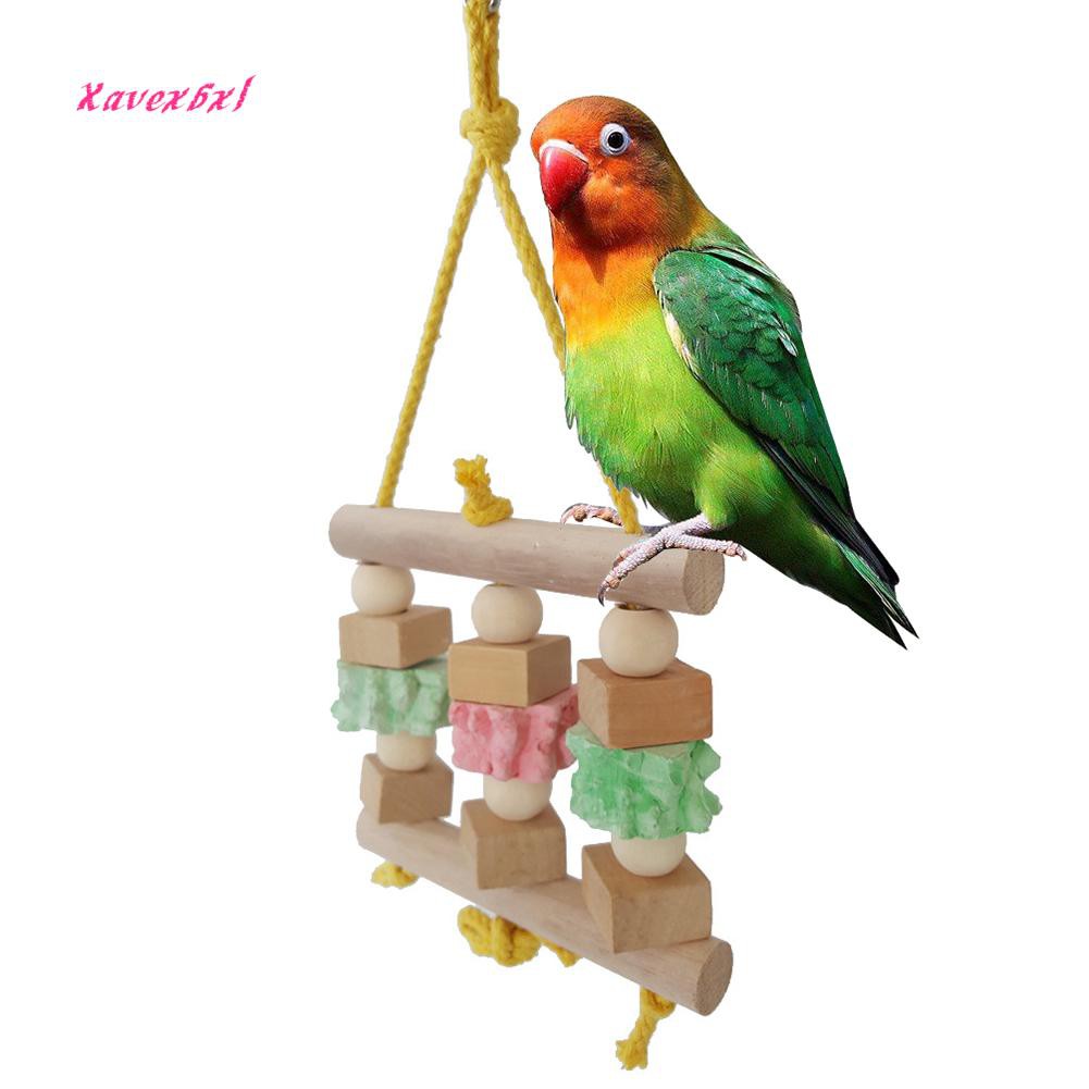 Xa Parrot Birds Wooden Hanging Swing Ball Block Chew Bite Toys
