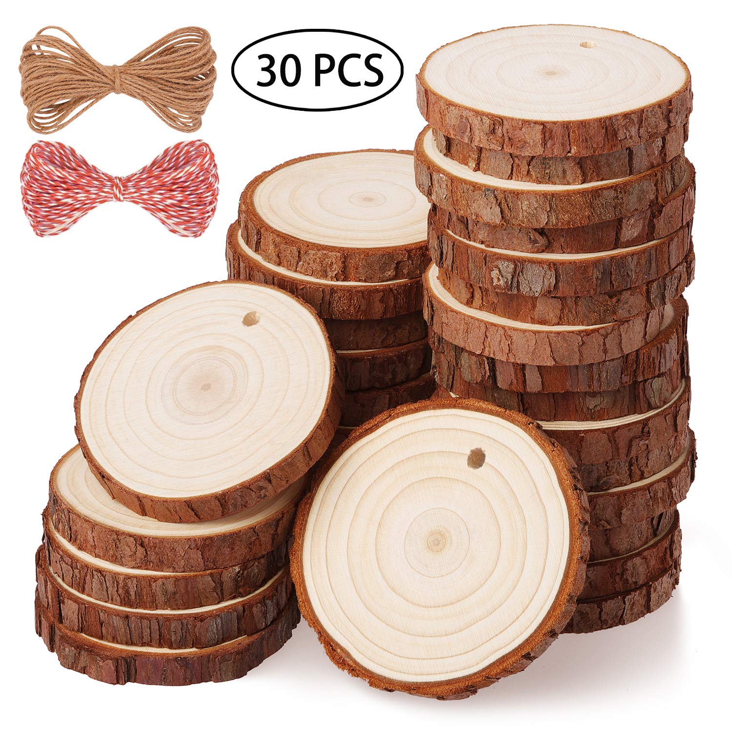 Fuyit Wood Slices 30 Pcs 5 6cm Drilled Hole Natural Unfinished Log