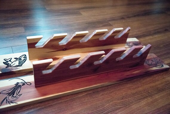 Fly Rod Fishing Rod Rack Carved Wooden Etsy