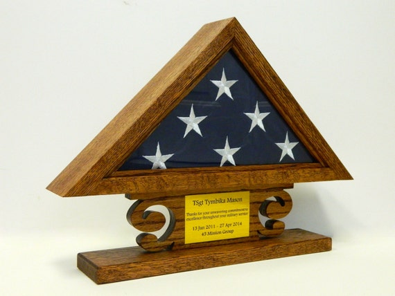 Wooden folded flag holder. Flag display cases protect the memorial flag of your loved one. Complete with a cherry stained solid oak wood base this display case is sure to add american pride to any home office or business. Get it as soon as thu mar 5. Free shipping by amazon.