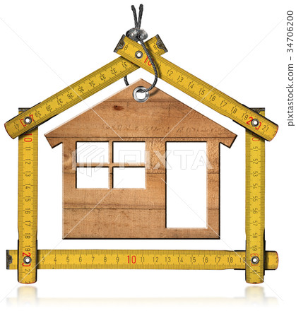Model House And Wooden Folding Ruler Stock Illustration
