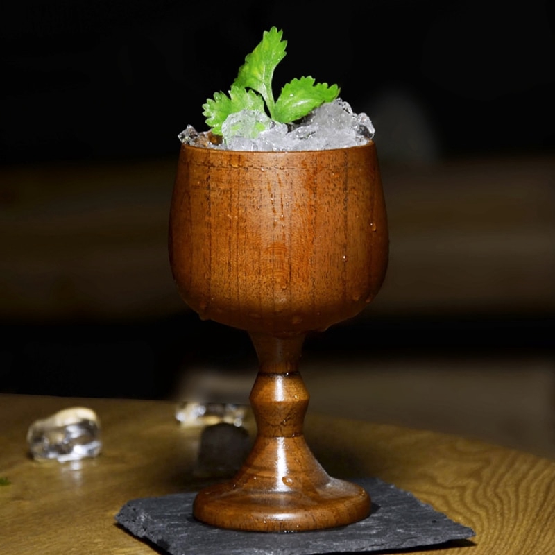 Vintage Wood Cup Beer Mug Cocktail Wine Cup Wooden Wine Goblet