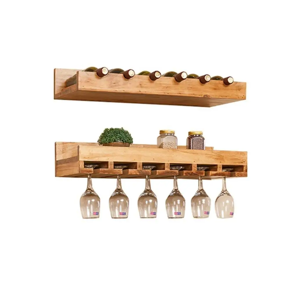 Wall Mount Pine Wooden Wine Bottle Rack Holder Wine Goblet Holder
